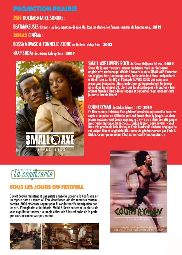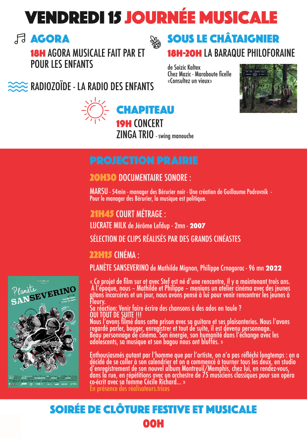 Le festival ouvrira ses portes à 18H avec des documentaires sonores pour enfants dans la forêt, mais aussi de nombreuses surprises que vous découvrirez dans le programme qui nous peaufinons pour vous.