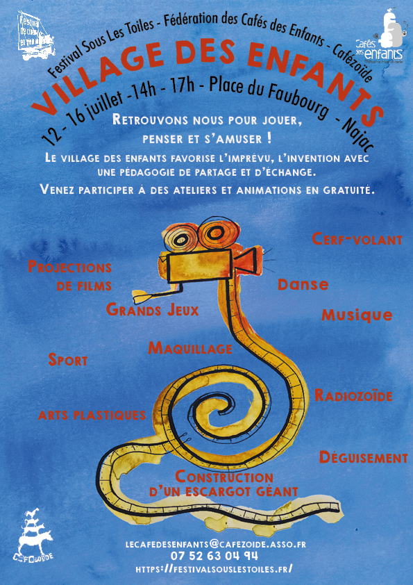 Pour cette 13eme édition le festival se déroule en journée dans le centre du village en partenariat avec le cafézoide qui va créer le VILLAGE DES ENFANTS :